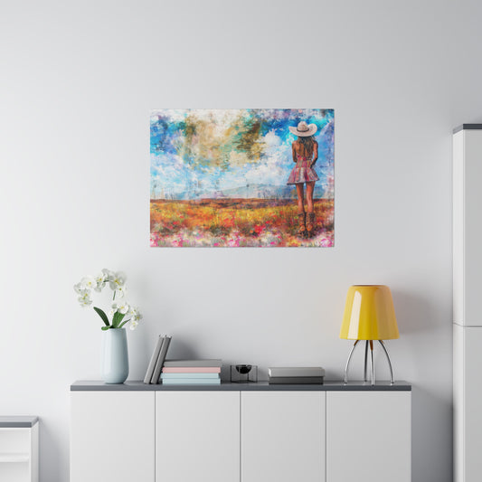 A Horizontal Canvas Art Print of - A Country Girl out in Nature.